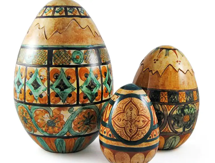 The decoration of the pottery is "scratched" on the first layer of glaze (engobe) before the first firing. Then the pieces are painted in colors similar to the ones used in the Renaissance when this particular pottery brought a bright and cheerful touch into every house of the region.