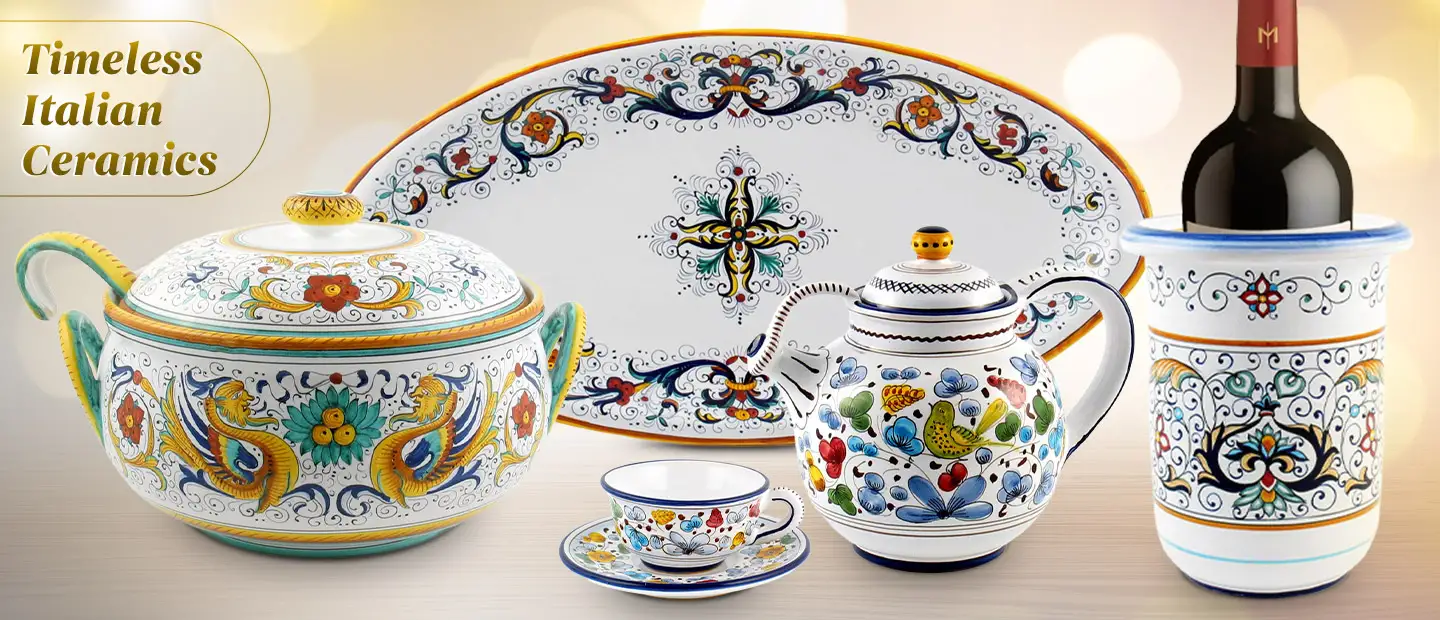 Transform your home for the holiday season with our hand-painted Italian Christmas ornaments, exquisite decorations, and festive dinnerware.